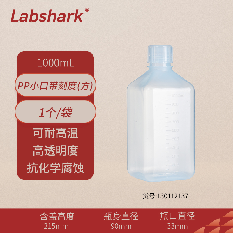 PP小口瓶(方 帶刻度)1000mL本色 1個/袋 130112137