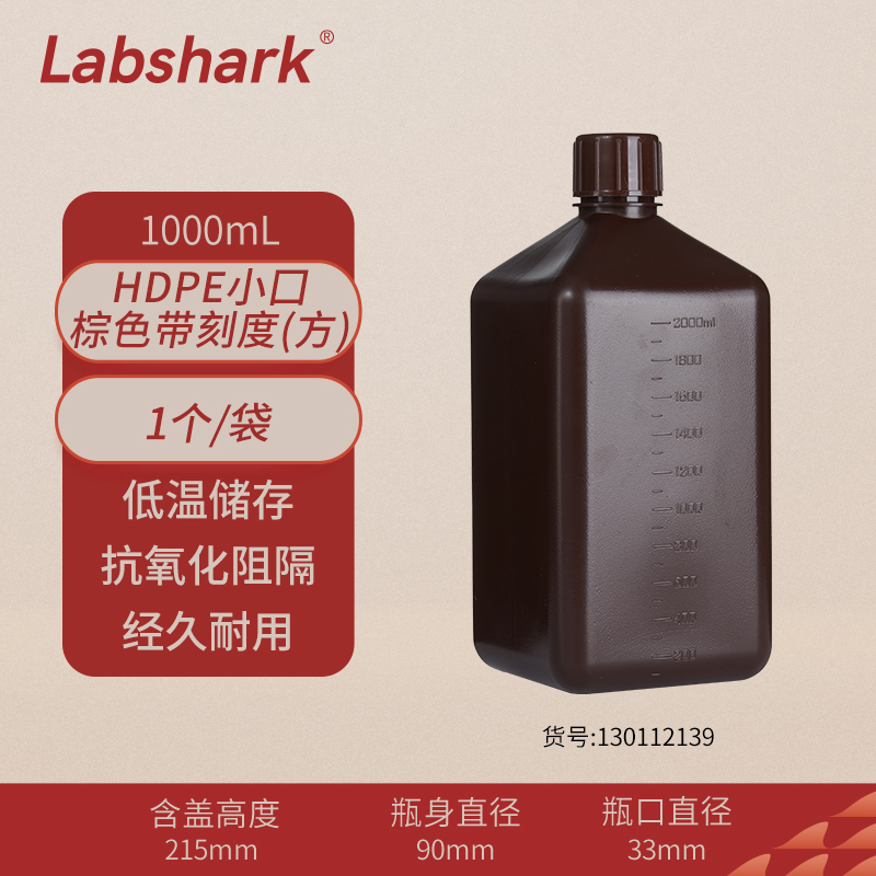 HDPE小口瓶(方 帶刻度)1000mL棕色 1個/袋 130112138
