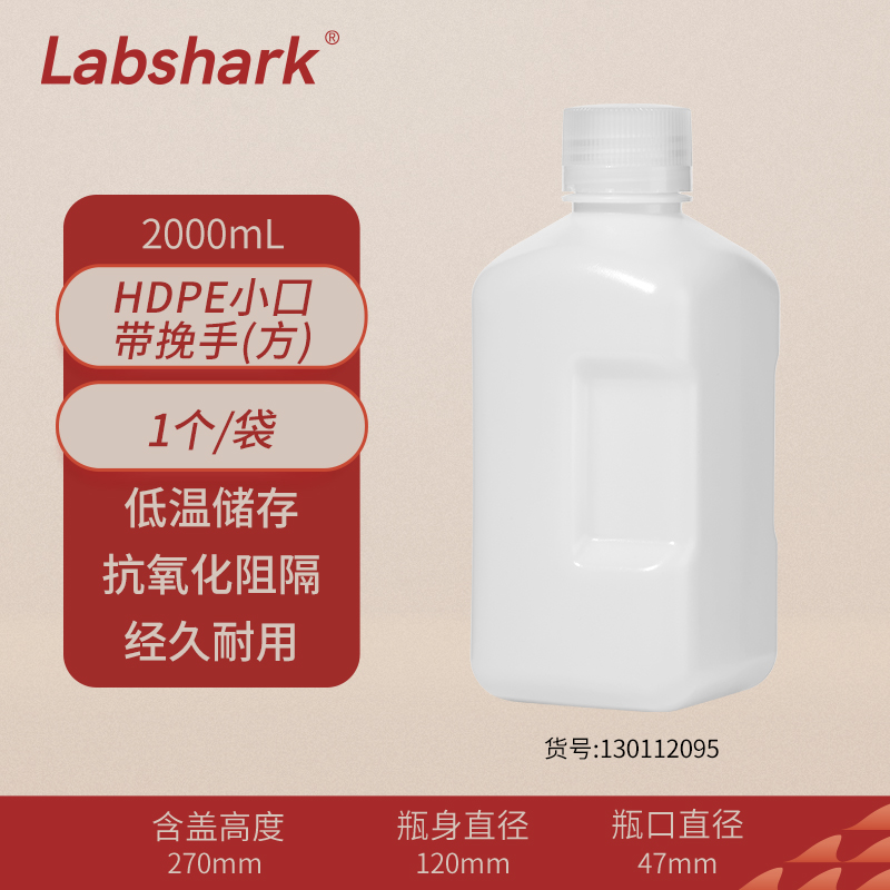 HDPE小口瓶(方 帶挽手)2000mL本色 1個/袋 130112141