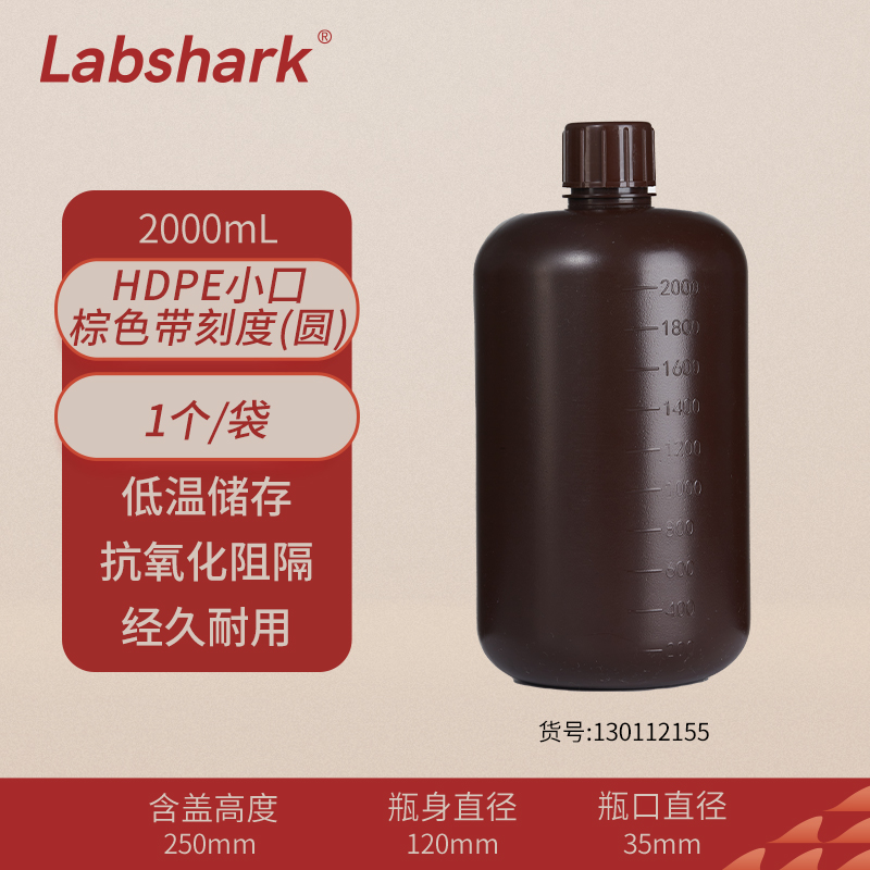 HDPE小口瓶(圓 帶刻度)2000mL棕色 1個/袋 130112154