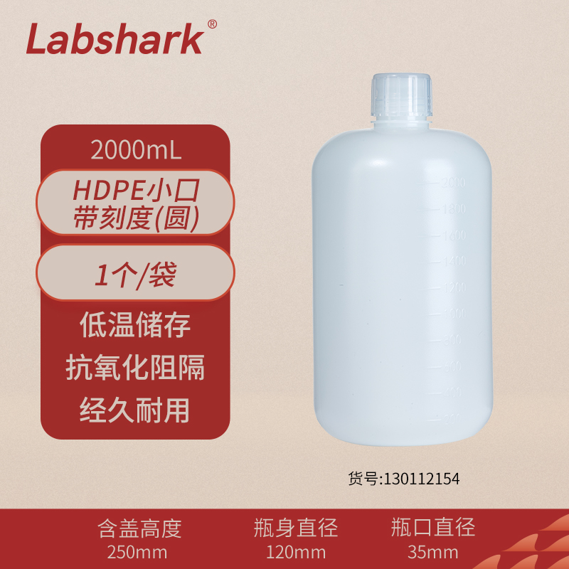 HDPE小口瓶(圓 帶刻度)2000mL本色 1個/袋 130112092