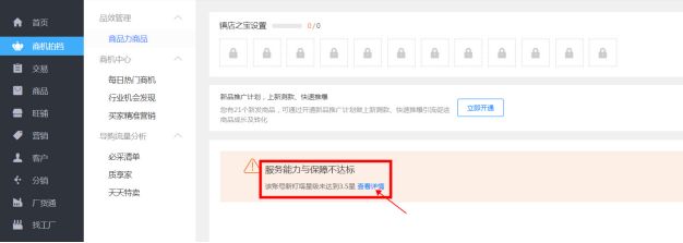 當(dāng)服務(wù)星級(jí)不達(dá)標(biāo),會(huì)無(wú)法設(shè)置鎮(zhèn)店之寶、金冠品、櫥窗寶等商品力商品。
