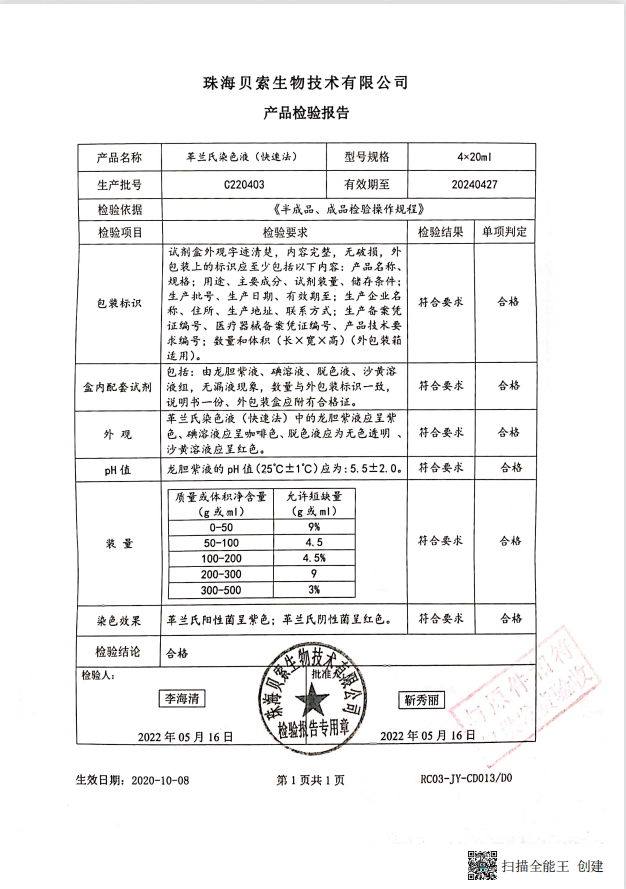 貝索 革蘭氏染色液(快速法) 20ml4盒 BA4032 C220403