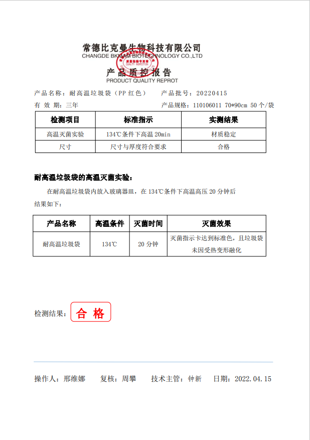 耐高溫垃圾袋生 紅色帶變色指示標(biāo) 70x90cm (PP復(fù)合膜材質(zhì)) 50個(gè)袋 110106011 20220415