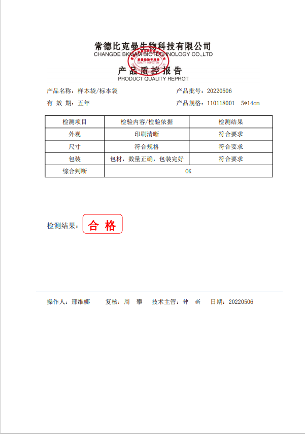 比克曼生物 樣本袋 5x14cm 100個 袋 110118001 20220506