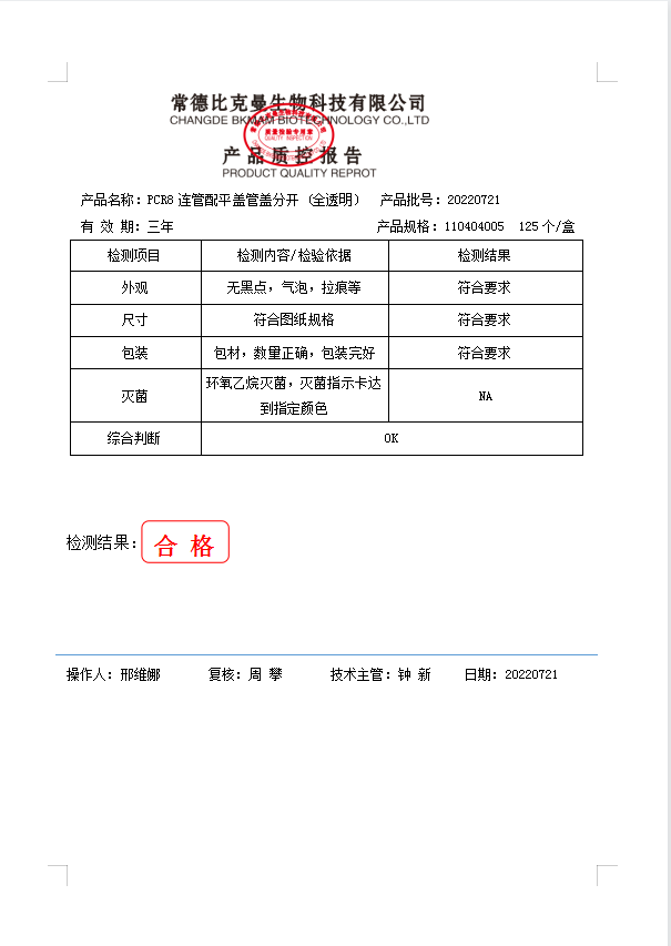 PCR八連排管 0.2ml PCR8連管配平蓋管蓋分開(kāi) (全透明) 125個(gè)盒 110404005 20220721