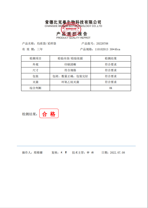 立式無(wú)菌采樣袋 30x40 (帶壓條) 50個(gè)裝 110102013 20220708