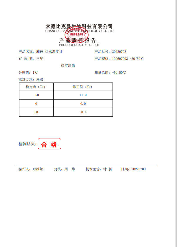 湘玻 紅水溫度計 -50-50℃ 120607003 20220708