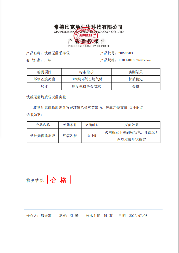 鐵絲無(wú)菌采樣袋 76x178 (帶書寫區(qū)域) 100個(gè)裝 110114018 20220708