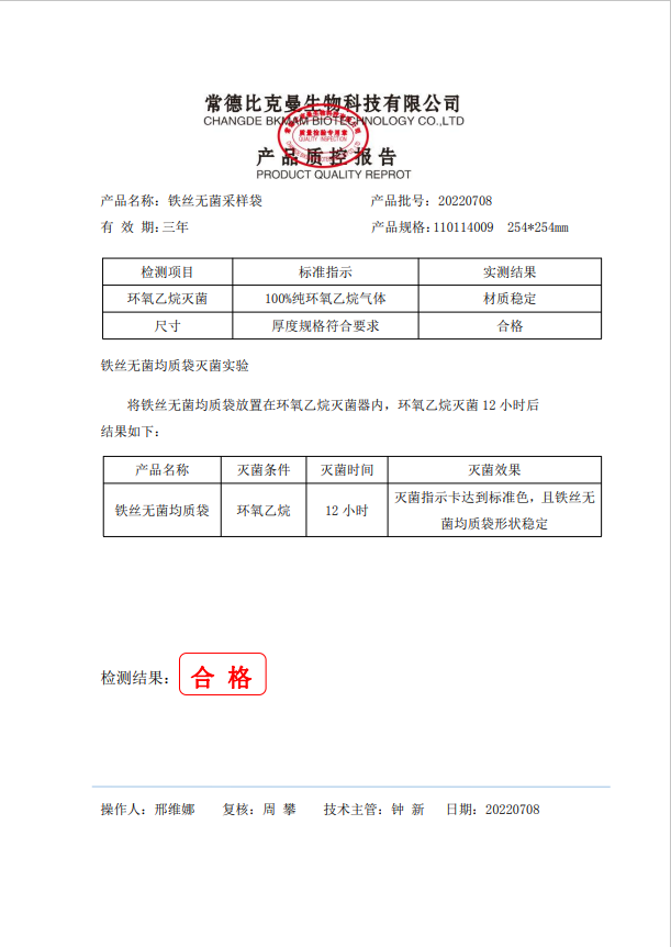 鐵絲無菌采樣袋 254x254 50個裝 110114009 20220708