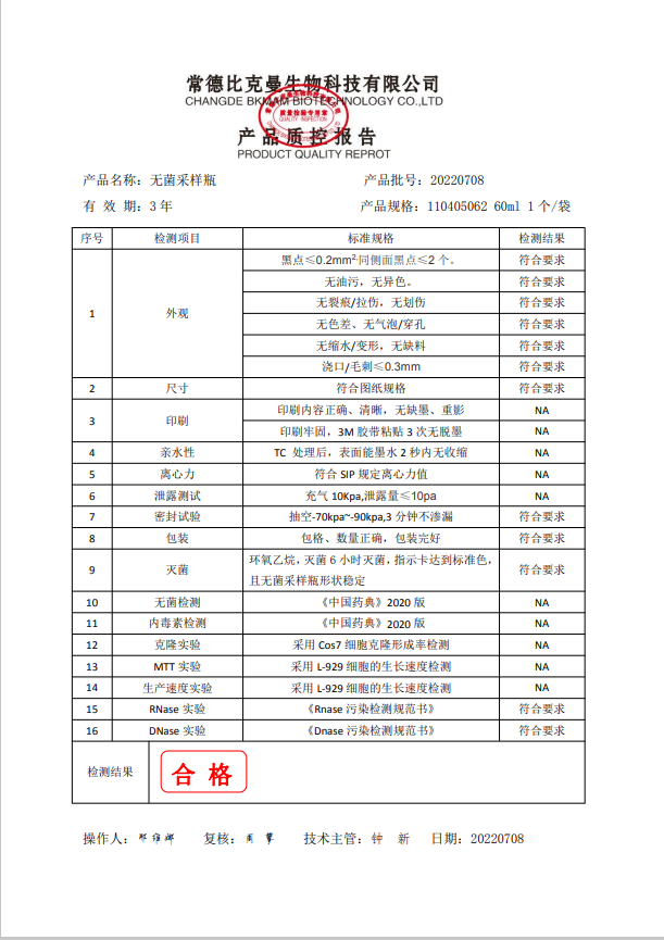 比克曼生物 無菌采樣瓶 60ml 獨立裝 110405062 20220708
