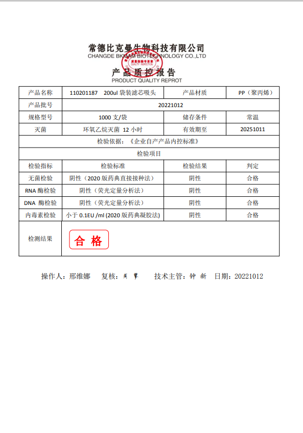 袋裝濾芯吸頭 200ul 袋裝濾芯吸頭 1000支裝 110201187 20221012