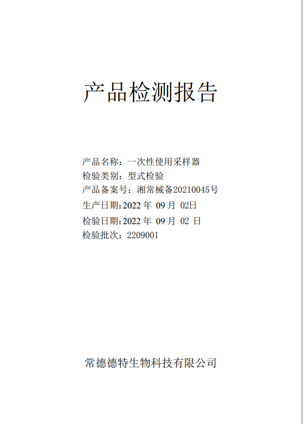 德特 一次性使用采樣器3ml(C-03滅活型) 質(zhì)檢報(bào)告-生產(chǎn)批號(hào) 2209001 生產(chǎn)日期 20220902