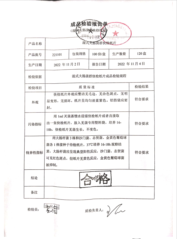 康華 濕式大腸菌群快檢紙片 100份盒 160711012 221101