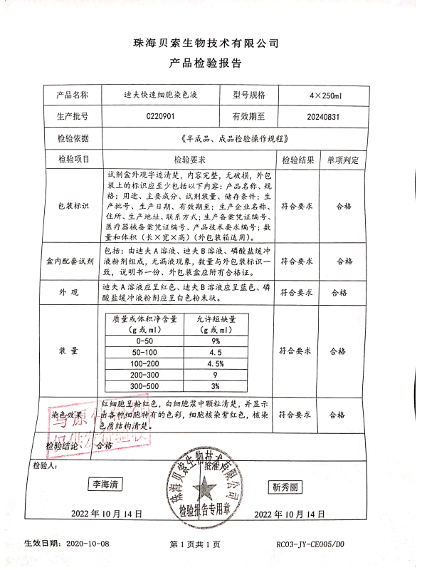 貝索 迪夫快速細胞染色液 250mlx4 BA4100 C220901