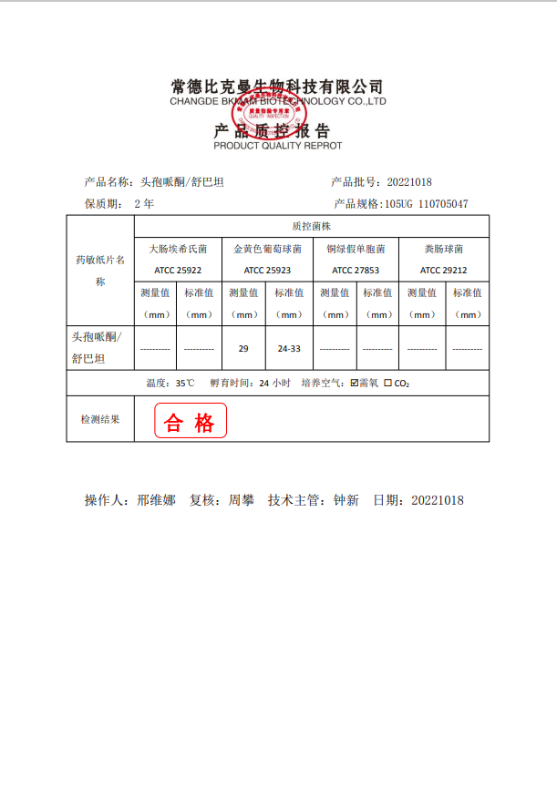 比克曼生物 頭孢哌酮 舒巴坦 105UG 110705047 20片瓶 20221018