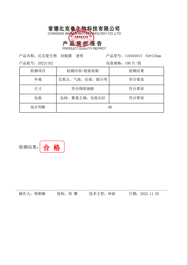 110404013 比克曼生物 封板膜 透明 83x135mm 100片袋 20221102