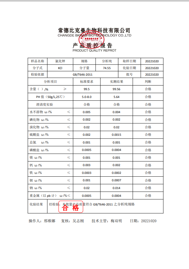 110702032 氯化鉀 AR 分析純 500g瓶 20221020