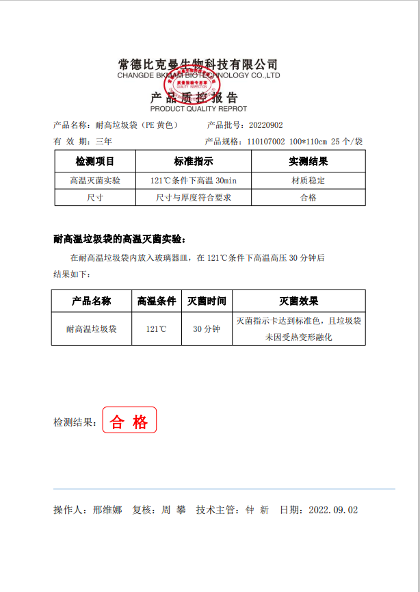 110107002 耐高溫垃圾袋 黃色 100x110cm (PE復(fù)合膜材質(zhì)) 25個袋 20220902