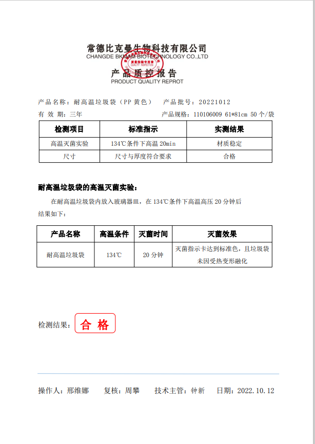 110106009 耐高溫垃圾袋 黃色 61x81cm (PP復(fù)合膜材質(zhì)) 50個(gè)袋 20221012