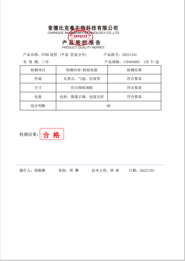110404005 PCR8連管 (平蓋 管蓋分開) 0.2ml 125個(gè)盒 20221101
