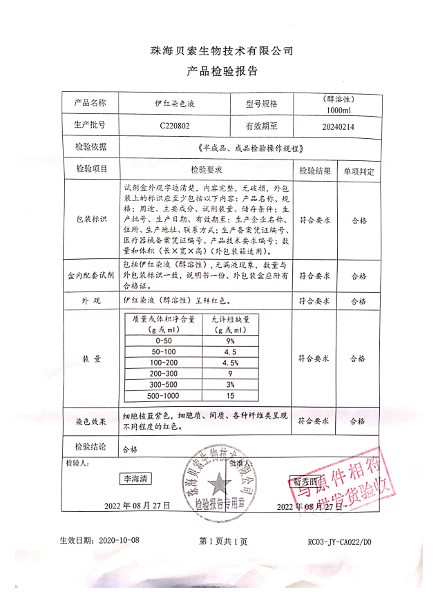 貝索 伊紅染液(醇溶性) 1000ml BA4022 C220802