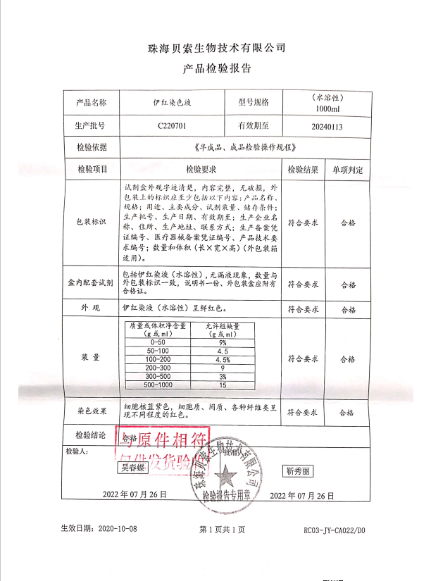 貝索 伊紅染色液(水溶性)1000ml BA4024 C220701