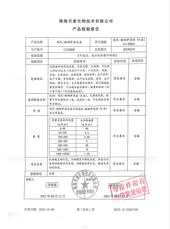 瑞士-姬姆薩染色液 (A液) 4x250ml C220808