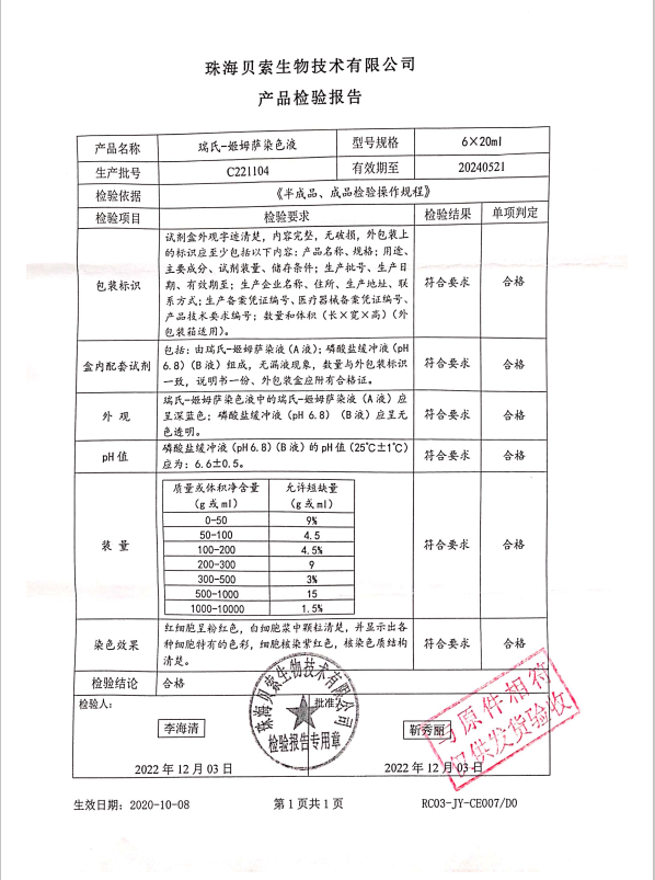 貝索 瑞氏-姬姆薩染色液 20mlx6 C221104