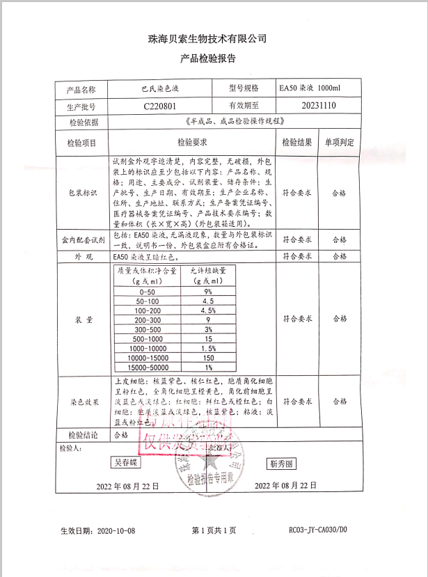 貝索 巴氏染色液 EA-50 1000ml BA4036A C220801