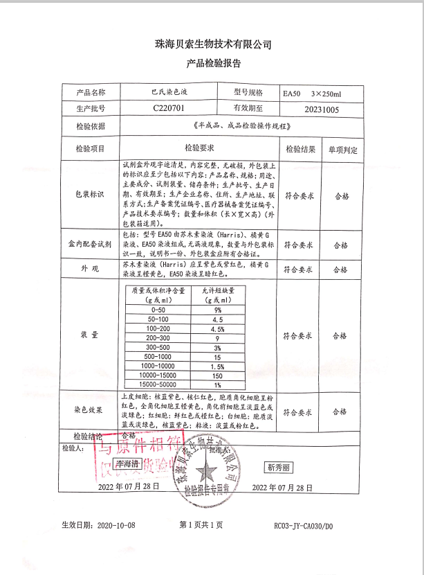 貝索 巴氏染色液 EA-50 3x250ml BA4135A C220701
