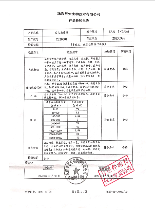 貝索 巴氏染色液 EA-36 3x250ml BA4135 C220601