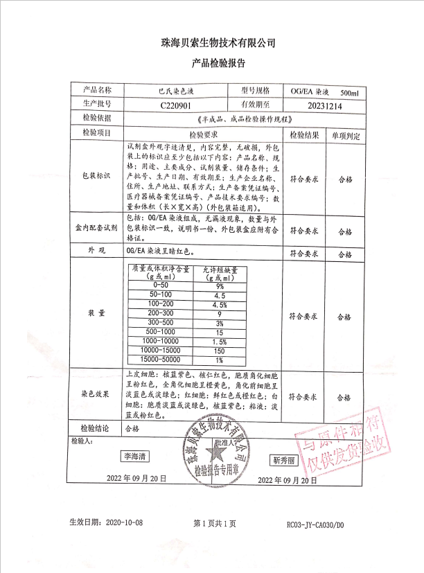 貝索 巴氏染色液 OG-EA 500ml BA4133 C220901