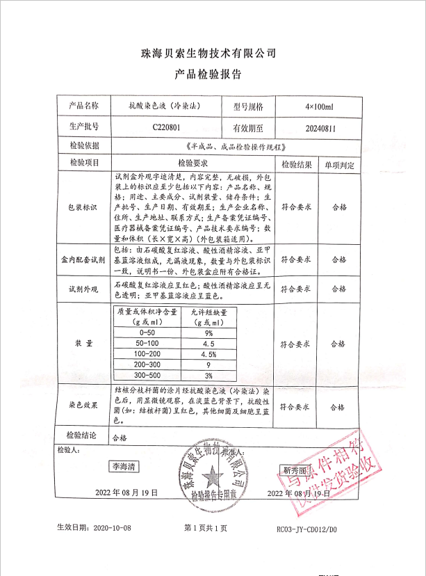 貝索 抗酸染色液(冷染法) 4x100ml C220801