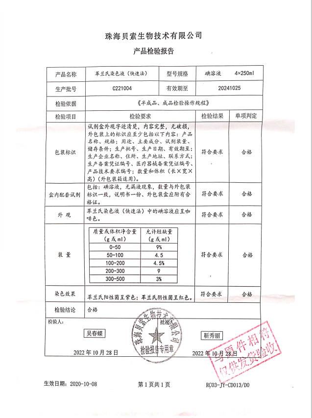貝索 革蘭氏染色液(快速法) 碘溶液 4x250ml BA-4016B C221004