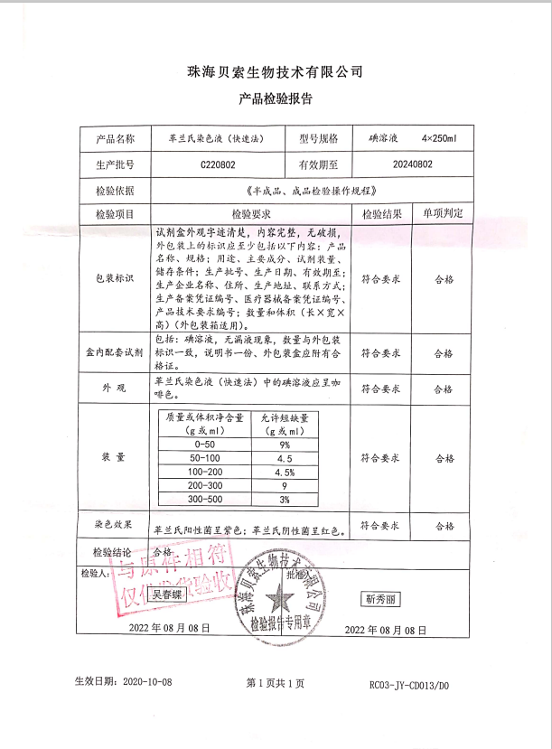 貝索 革蘭氏染色液(快速法) 碘溶液 4x250ml BA-4016B C220802