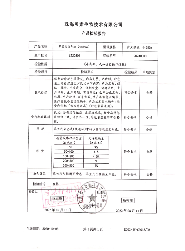 貝索 革蘭氏染色液(快速法) 沙黃溶液 4x250ml BA-4016D C220801