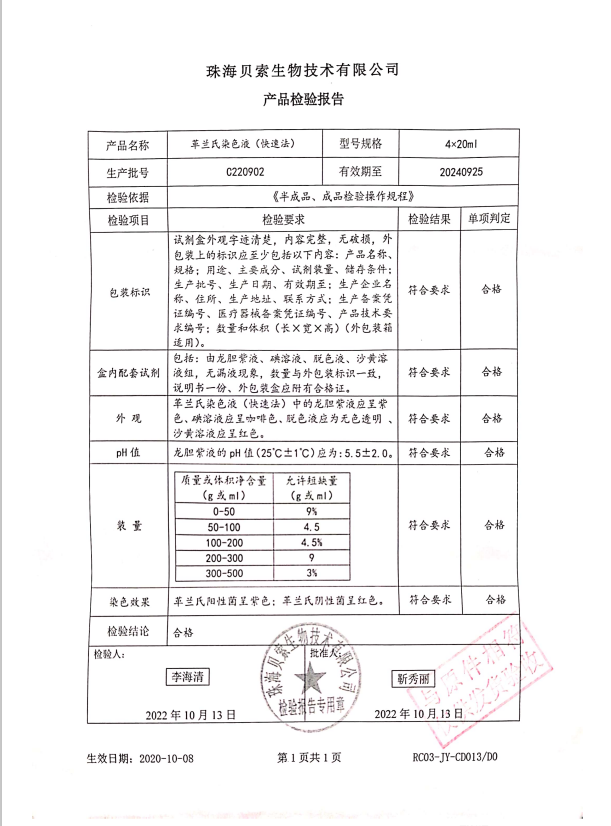貝索 革蘭氏染色液(快速法) 20ml4盒 BA4032 C220902