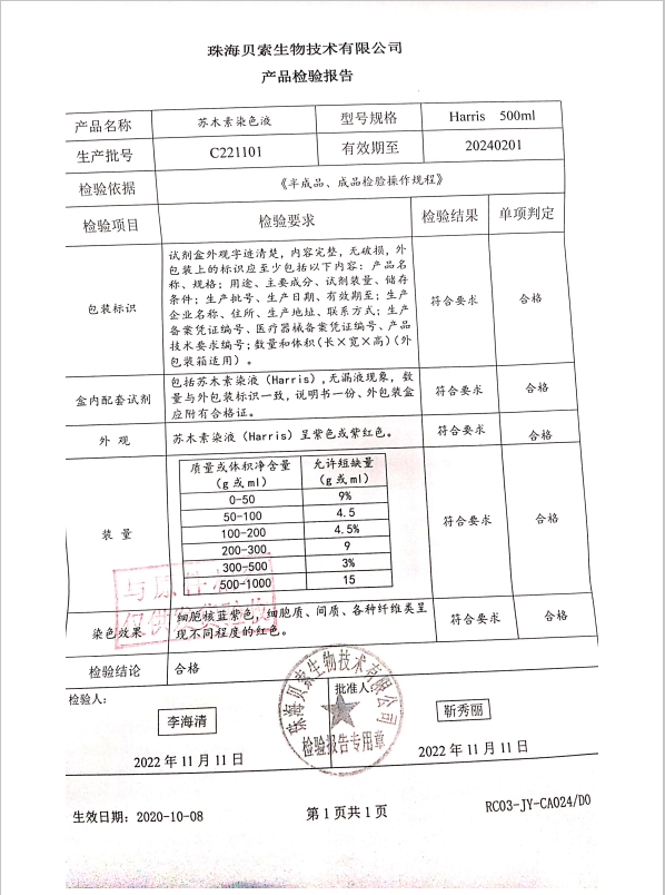 貝索 蘇木素染色液 Harris 500ml BA4097 C221101