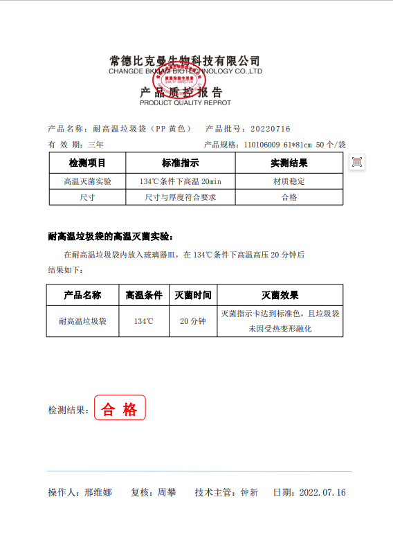 110106009 耐高溫垃圾袋 黃色 61x81cm (PP復(fù)合膜材質(zhì)) 50個袋 20220716