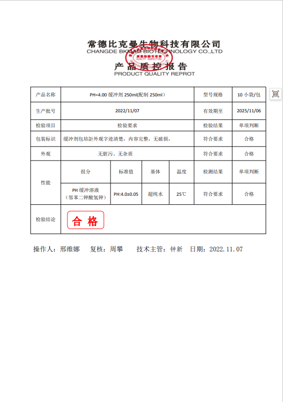 110702002 PH緩沖劑 PH=4.00緩沖劑 250ml(配制250ml) 20221107