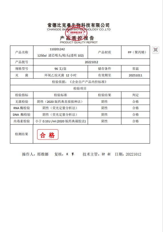 110201242 1250ul 濾芯吸頭槍頭(透明102) 96支裝 20221012