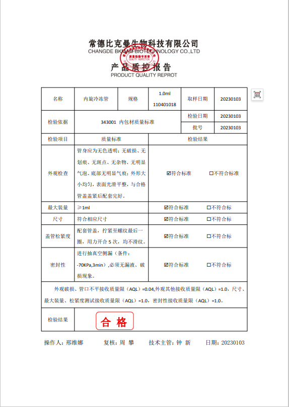 110401018 內(nèi)旋冷凍管 (凍存管) 1.0ml 100個袋 20230103