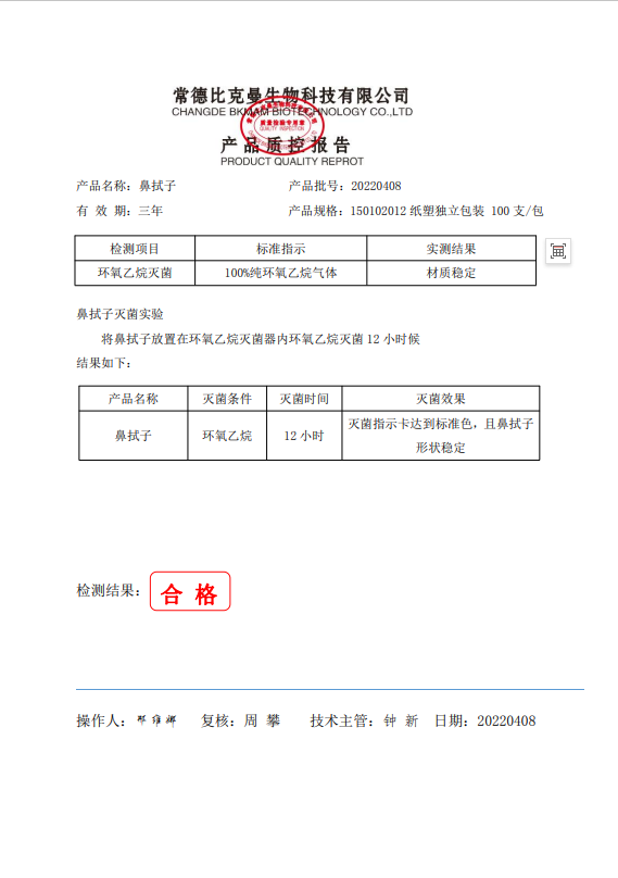 150102012 鼻拭子 1支袋 100支 包 20220408
