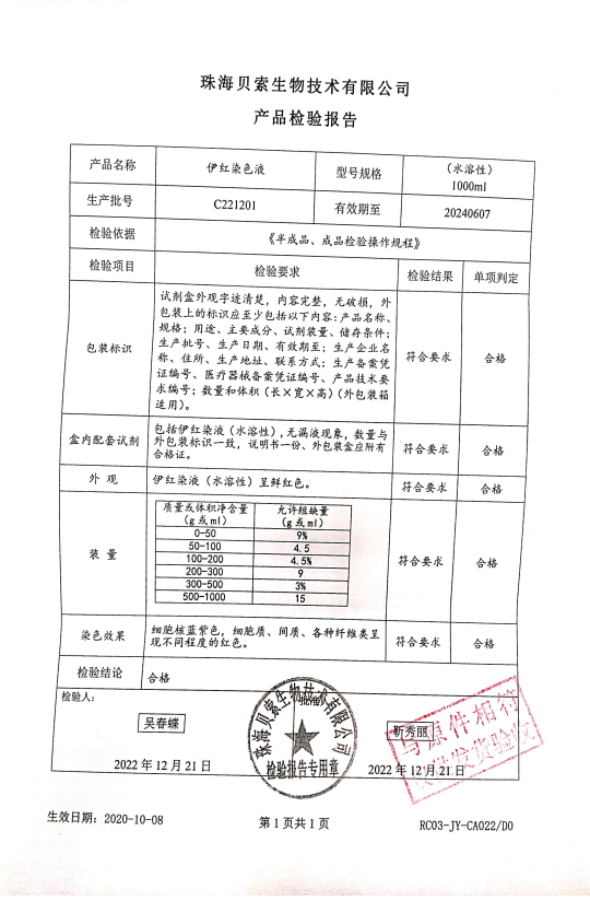 貝索 伊紅染色液(水溶性)1000ml BA4024 C221201
