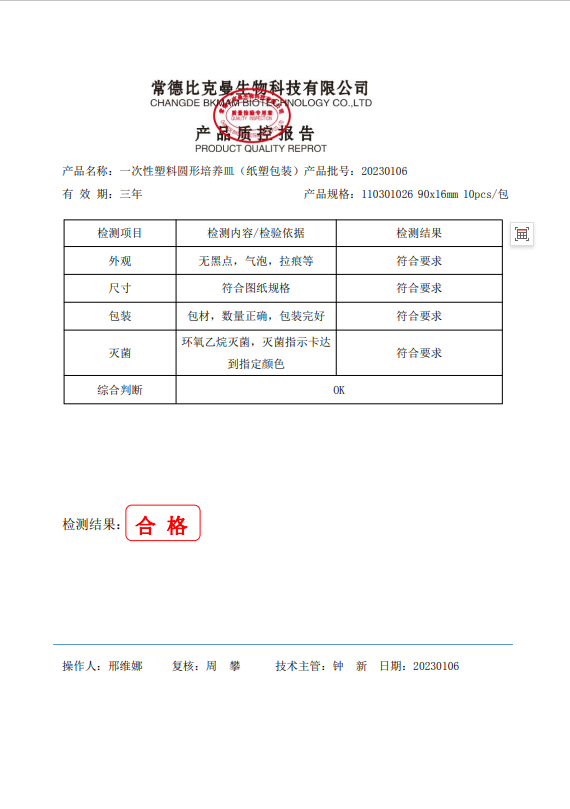 110301026 比克曼生物 一次性塑料圓形培養(yǎng)皿 (紙塑包裝) 90x16mm 10個(gè)袋 20230106