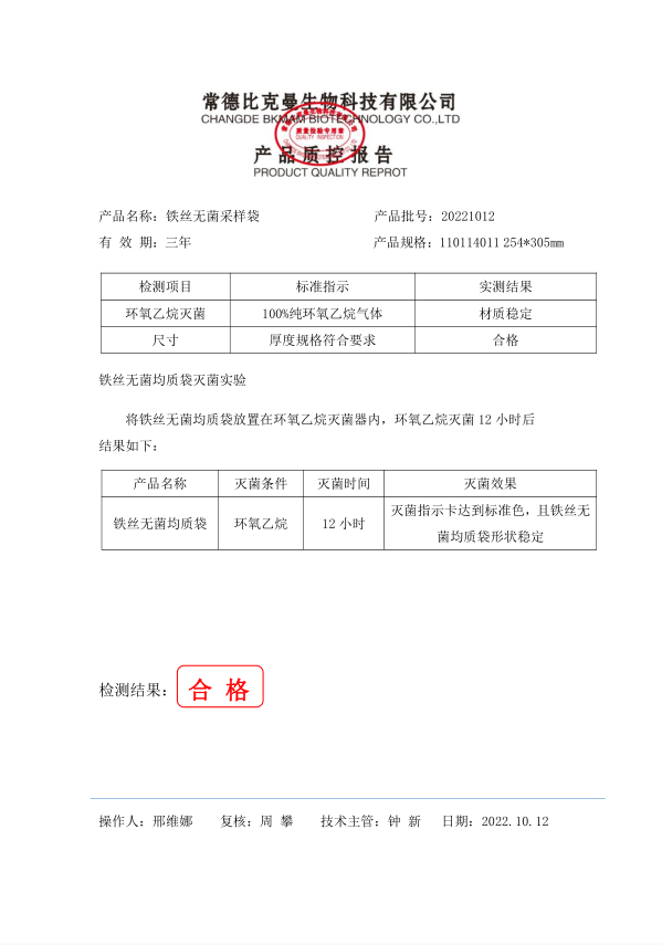 110114011 比克曼生物 鐵絲無菌采樣袋 254x305 (帶書寫區(qū)域) 50個(gè)裝 20221012