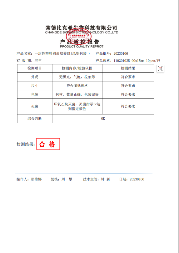 110301025 比克曼生物 一次性圓形塑料培養(yǎng)皿 (紙塑包裝) 90x15mm 10個袋 20230106