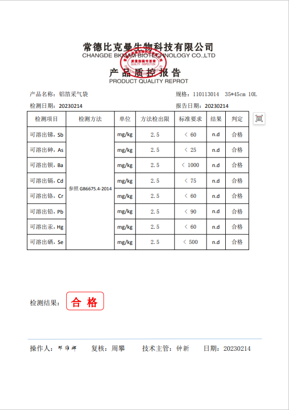 110113014 比克曼生物 單閥門(mén)鋁箔采氣袋 35x45cm 10L 20230214
