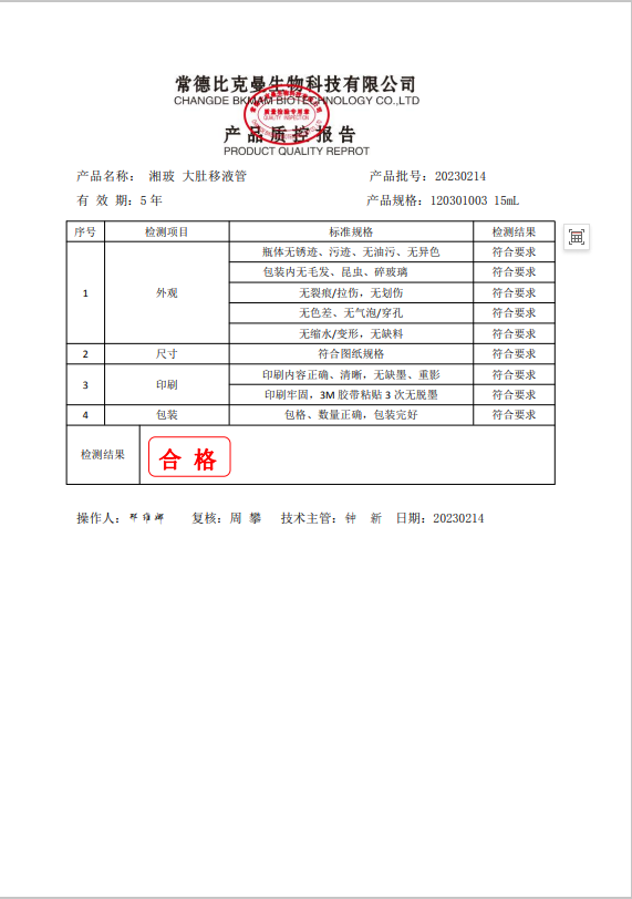 120301003 湘玻 大肚移液管 15ml(可過(guò)檢) 10支盒 20230214